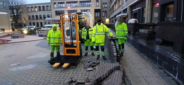 Enkele medewerkers van TWI herstelden recent een muurtje op de speelplaats van BuBaO